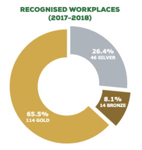To be recognised, workplaces must achieve both criteria: